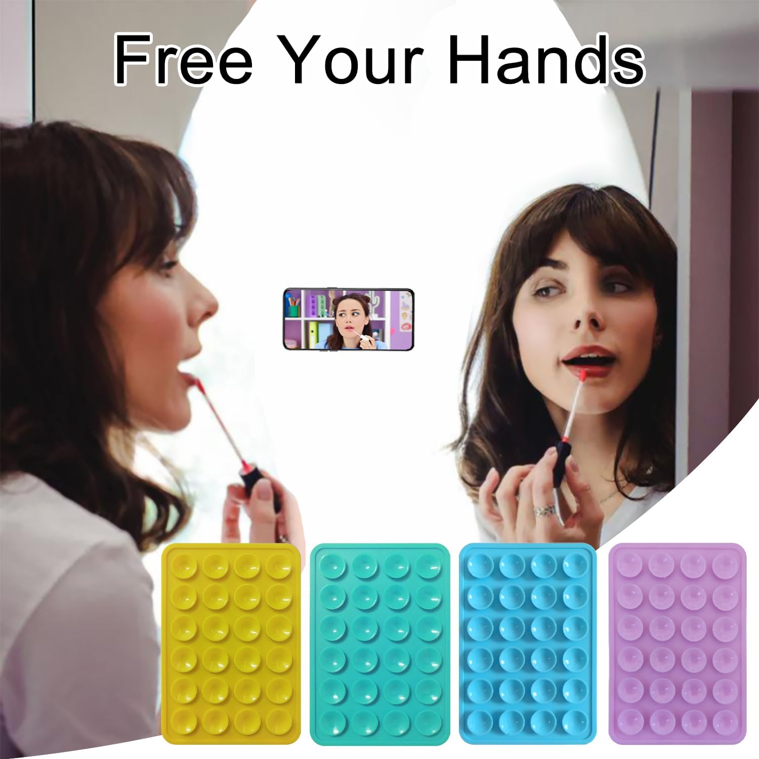 Adecuado para 4 Paquetes de ventosas de Silicona para Todos los Modelos de teléfonos móviles,Soportes de teléfonos móviles Antideslizantes para Selfies y Videos(Verde, Amarillo, Rosa, Azul)
