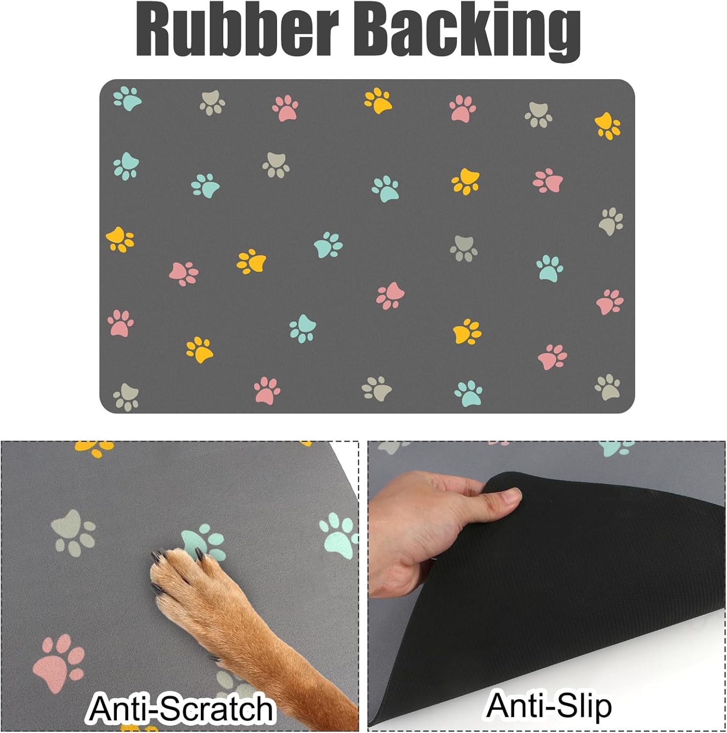 Diseño Multifuncional: Su generoso tamaño de 40 x 60 cm permite colocar simultáneamente los cuencos de comida y agua, lo que lo hace adecuado para gatos, perros y mascotas de todos los tamaños. Más allá de su función como alfombra comedero perro y gato, también sirve como alfombrilla para secar platos, revestimiento para bandejas sanitarias o protector de suelos, lo que la convierte en una solución versátil para múltiples situaciones domésticas.