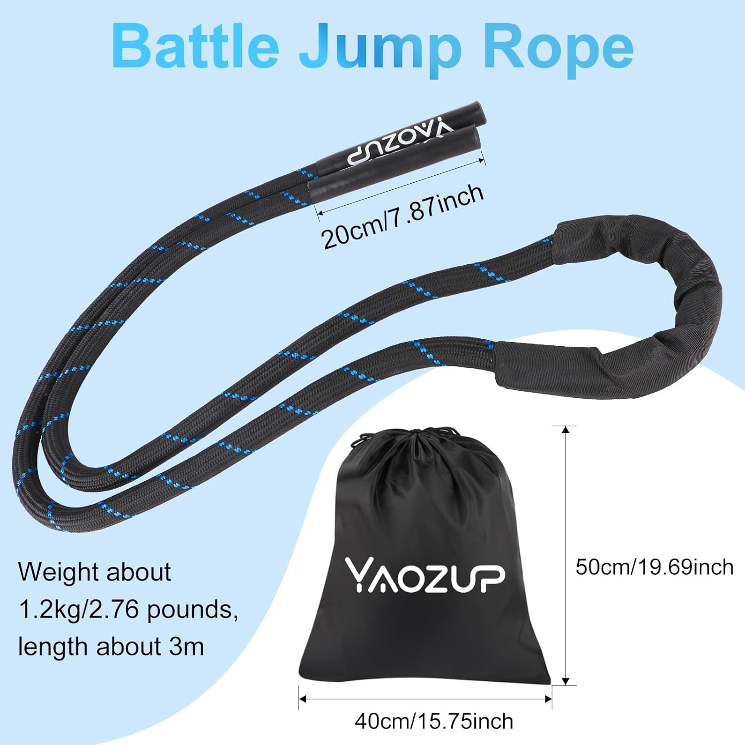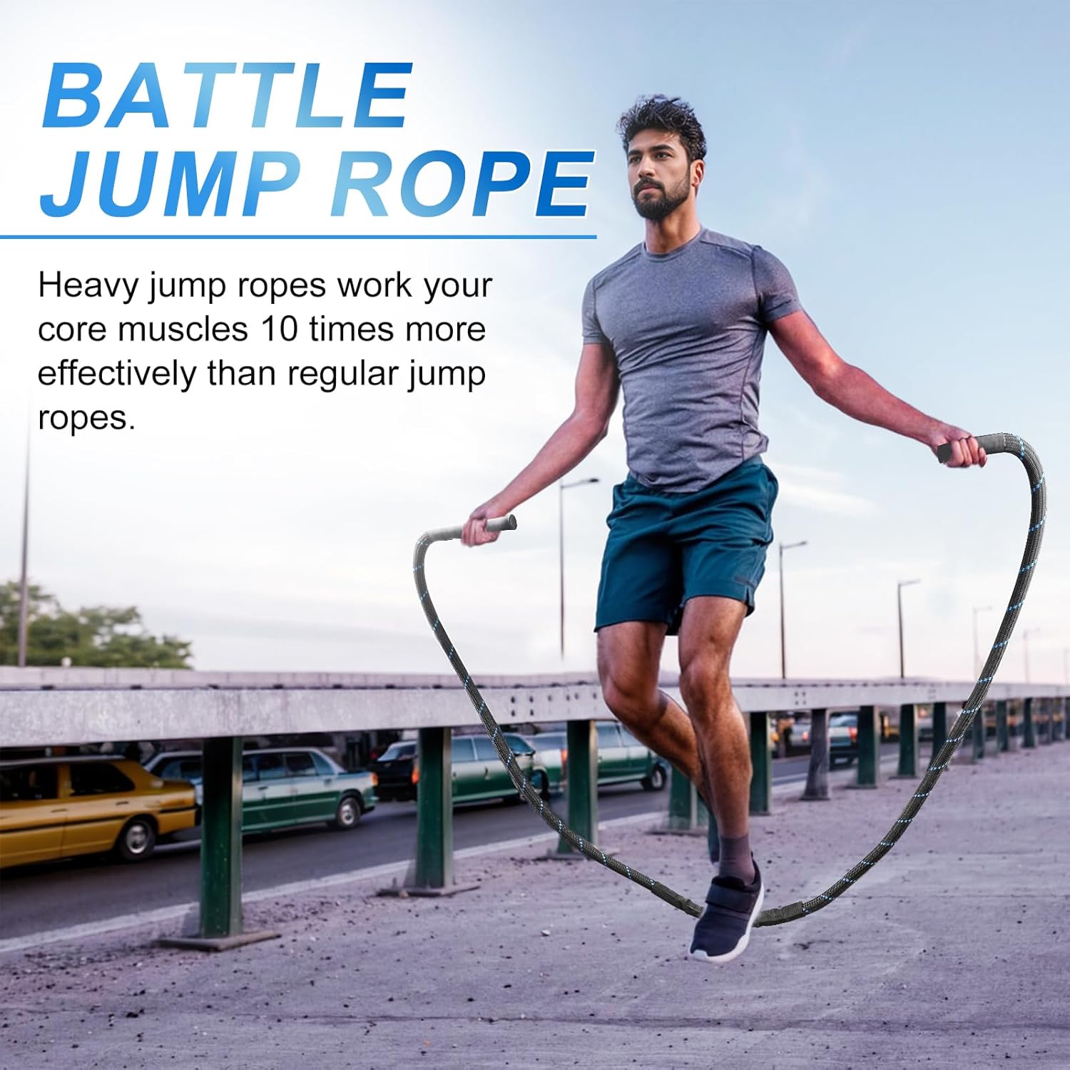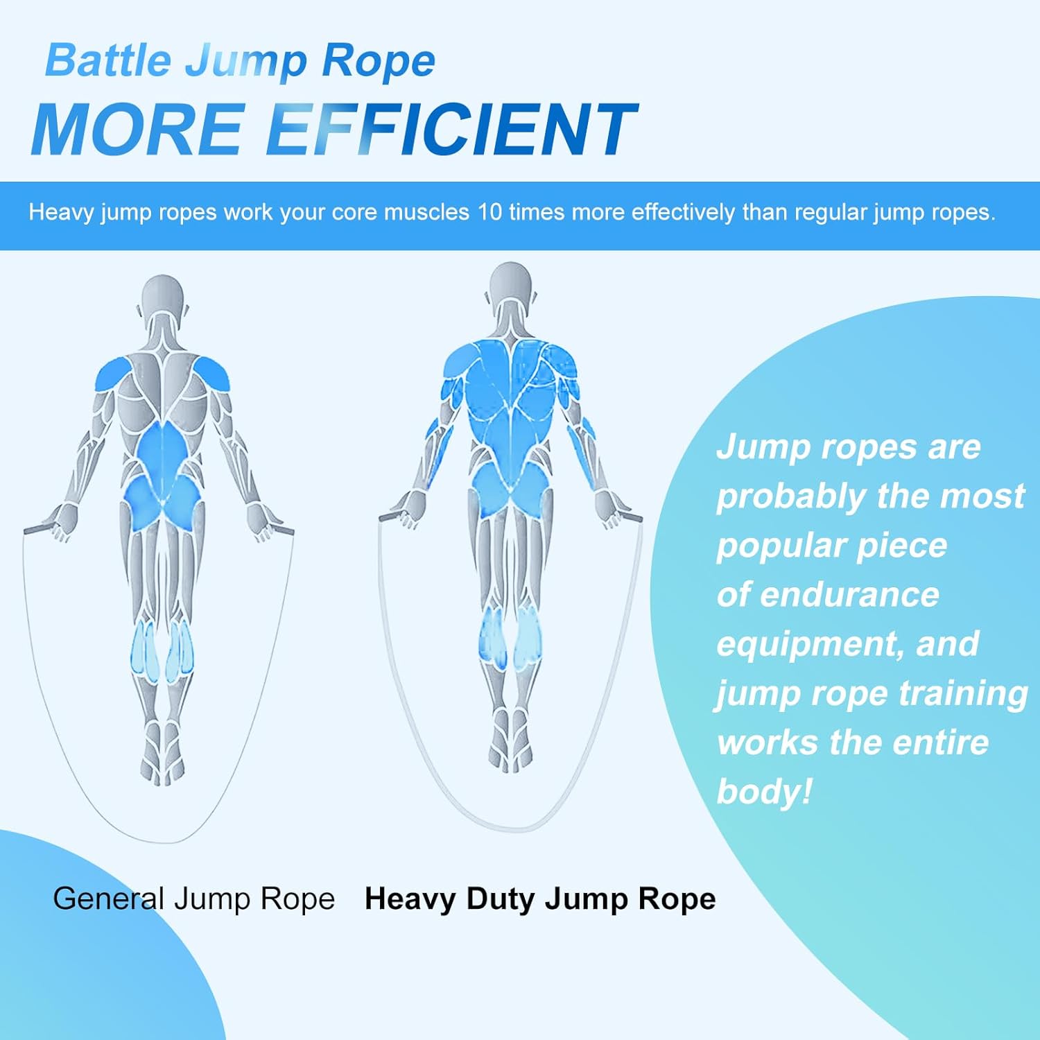 FÁCIL DE TRANSPORTAR: Nuestra Battle Jump Rope viene con una gran bolsa de almacenamiento para que usted pueda ponerla en su mochila o equipaje, fácil de llevar, fitness en cualquier momento y en cualquier lugar, entrenamiento ininterrumpido. Si desea hacer ejercicio mientras viaja o en viajes de negocios, nuestra cuerda de saltar de peso pesado es la mejor opción para usted.