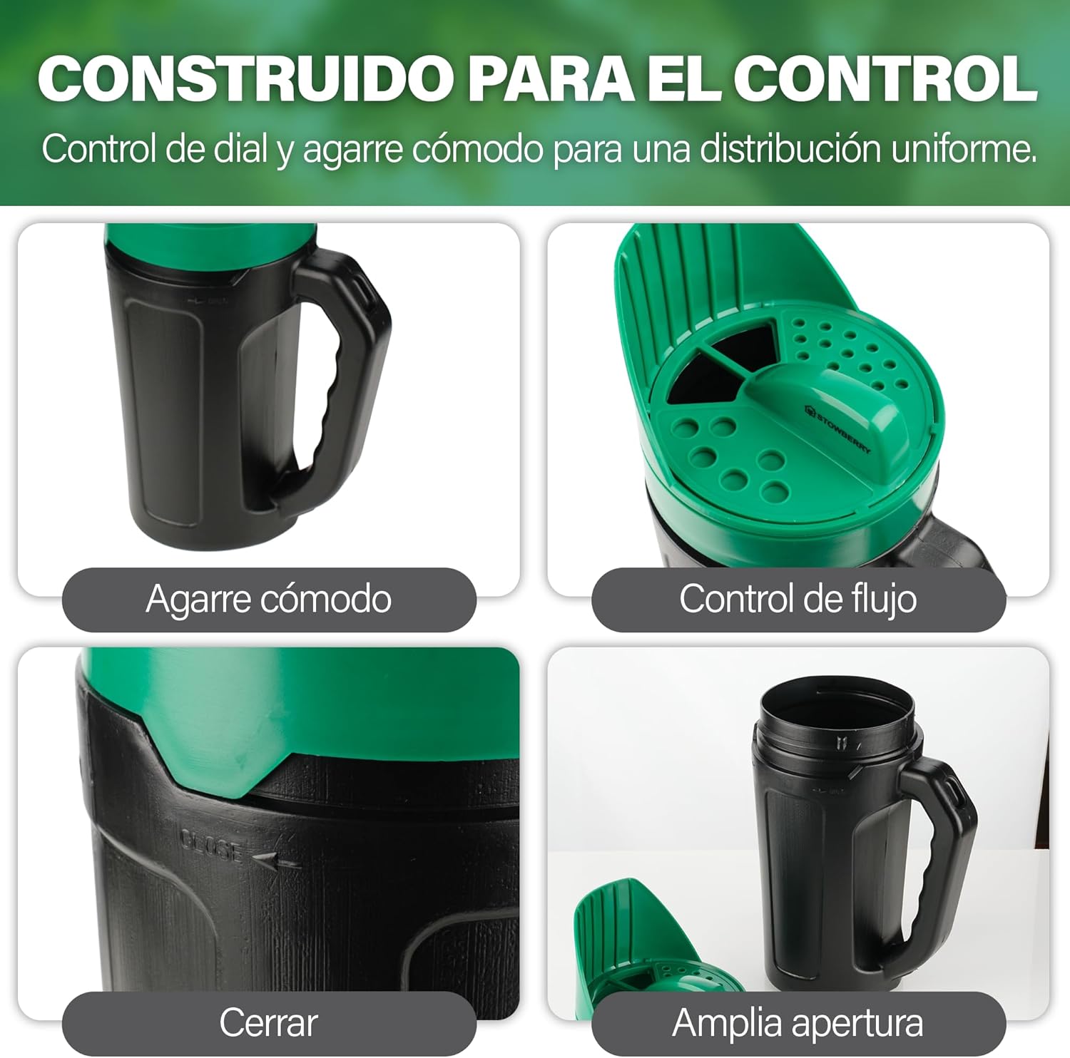DURADERO Y RESISTENTE A LA INTEMPERIE: Fabricado con materiales resistentes y duraderos, diseñados para soportar todas las estaciones, ya sea para el cuidado del césped en verano, la siembra en otoño o el derretimiento de hielo en invierno.
