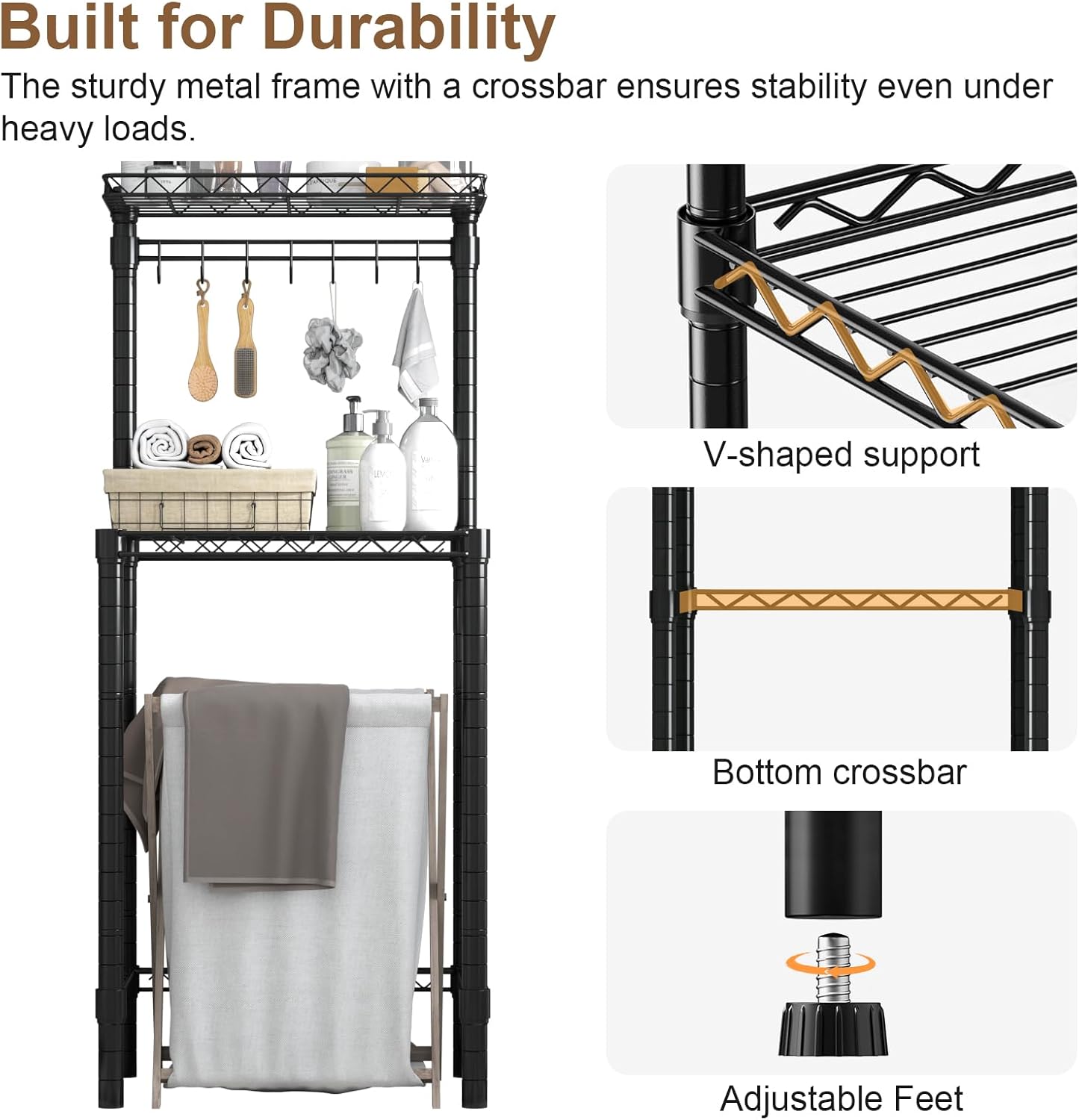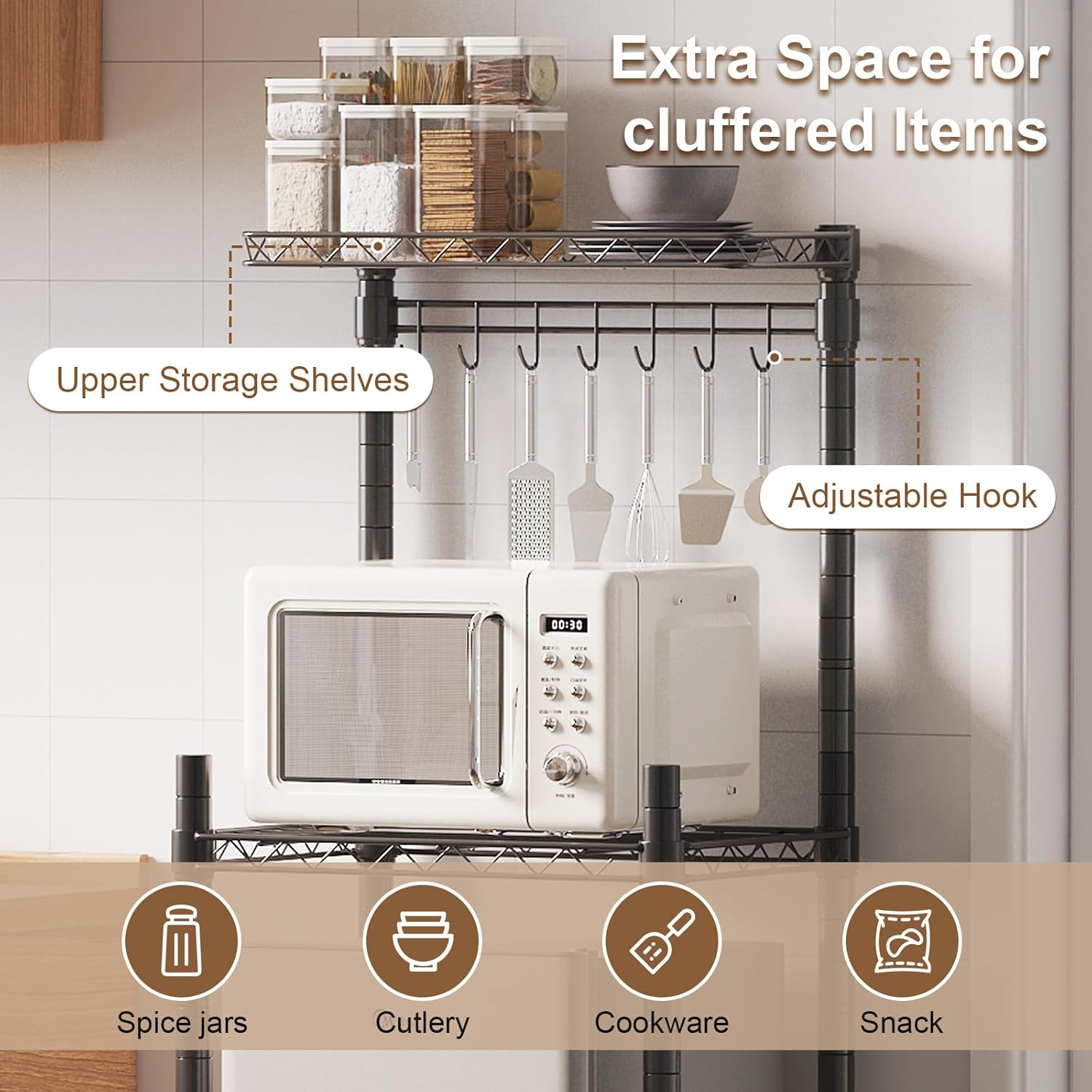 ✅ Altura Ajustable para Electrodomésticos – Los niveles se adaptan fácilmente a diferentes aparatos como microondas, cafetera, mini refrigerador o pequeños hornos. Solución ideal para cocina, baño o dormitorio.
