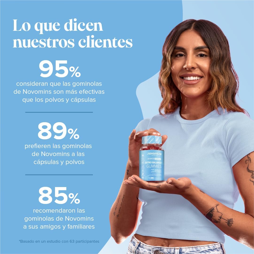 ¿POR QUÉ PREFERIR LAS GOMINOLAS ESTRO DE NOVOMINS? En Novomins nos enorgullecemos de ofrecer el suplemento de estrógenos de la más alta calidad mientras garantizamos que sea seguro y de origen ético. Nuestras gominolas se producen bajo los estándares de fabricación más estrictos (GMP) con ingredientes de la más pura calidad y de origen ético.