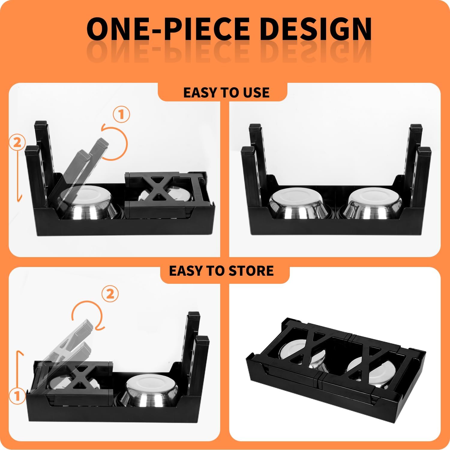 【Soporte ajustable con cinco alturas】: este comedero para perros elevado se ajusta a cinco alturas de 8 a 32 cm, lo que le permite encontrar la posición de alimentación más cómoda para su perro. La altura de nuestra plataforma elevada para comederos para perros se puede ajustar fácilmente para adaptarse a mascotas de todas las edades, razas y tamaños. acompañarlos desde cachorros hasta adultos.