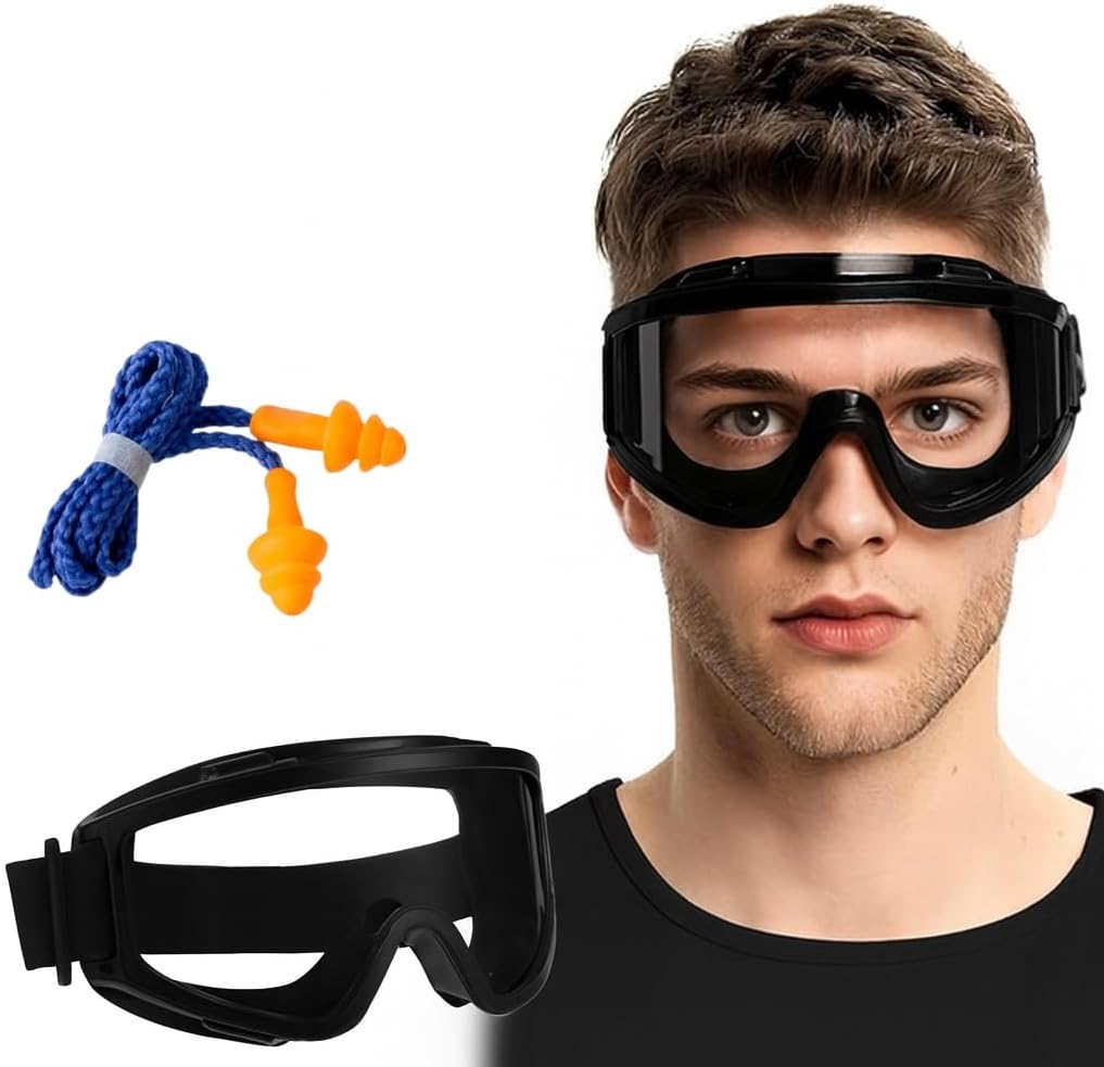 Gafas de Protección trabajo, Antivaho, Antipolvo, gafas de seguridad para Laboratorio,Bricolaje y ámbito profesional. incluye unos tapones para los oidos (transparente)