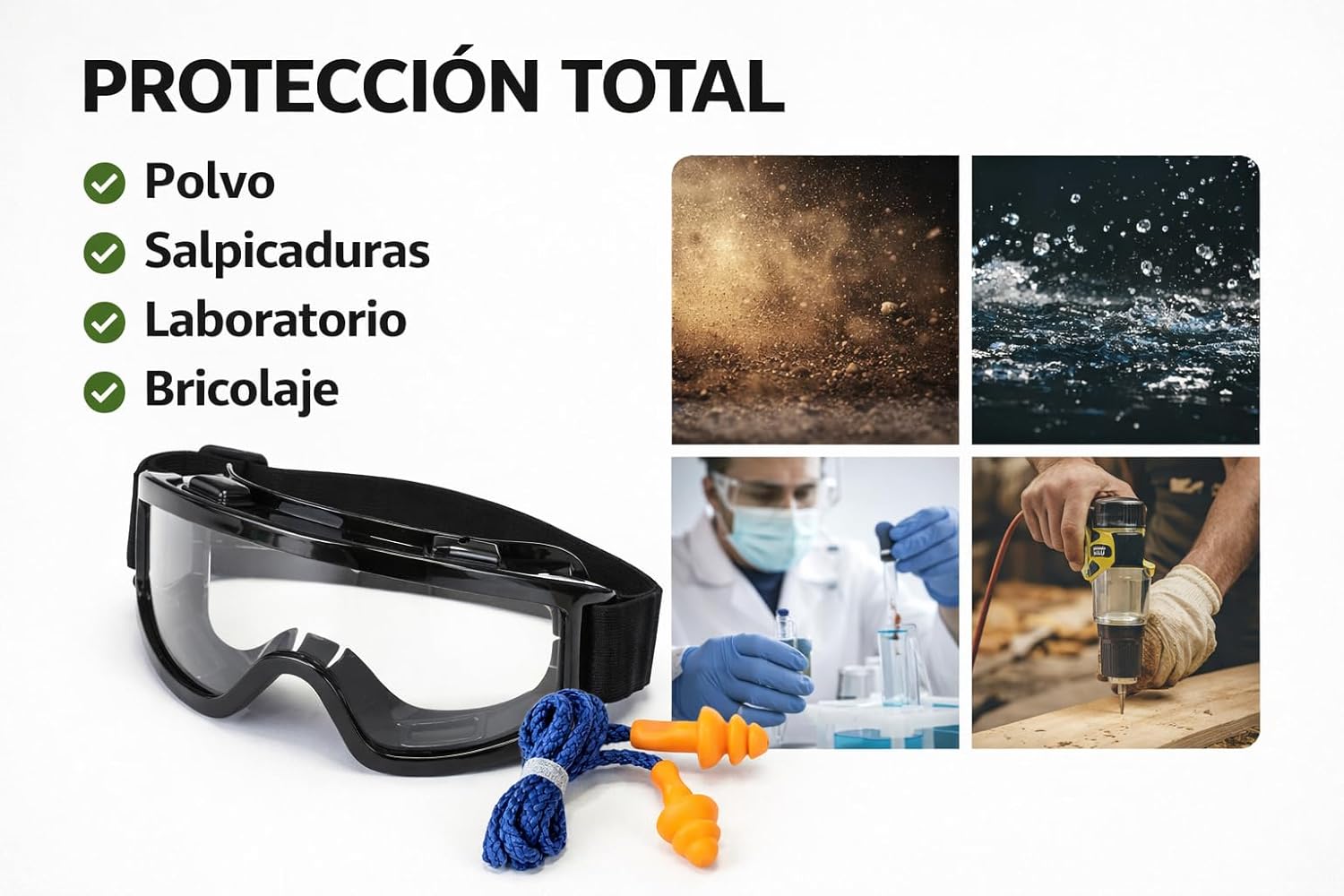 Se el primero en opinar sobre “Gafas de Protección trabajo, Antivaho, Antipolvo, gafas de seguridad para Laboratorio,Bricolaje y ámbito profesional. incluye unos tapones para los oidos (transparente)”