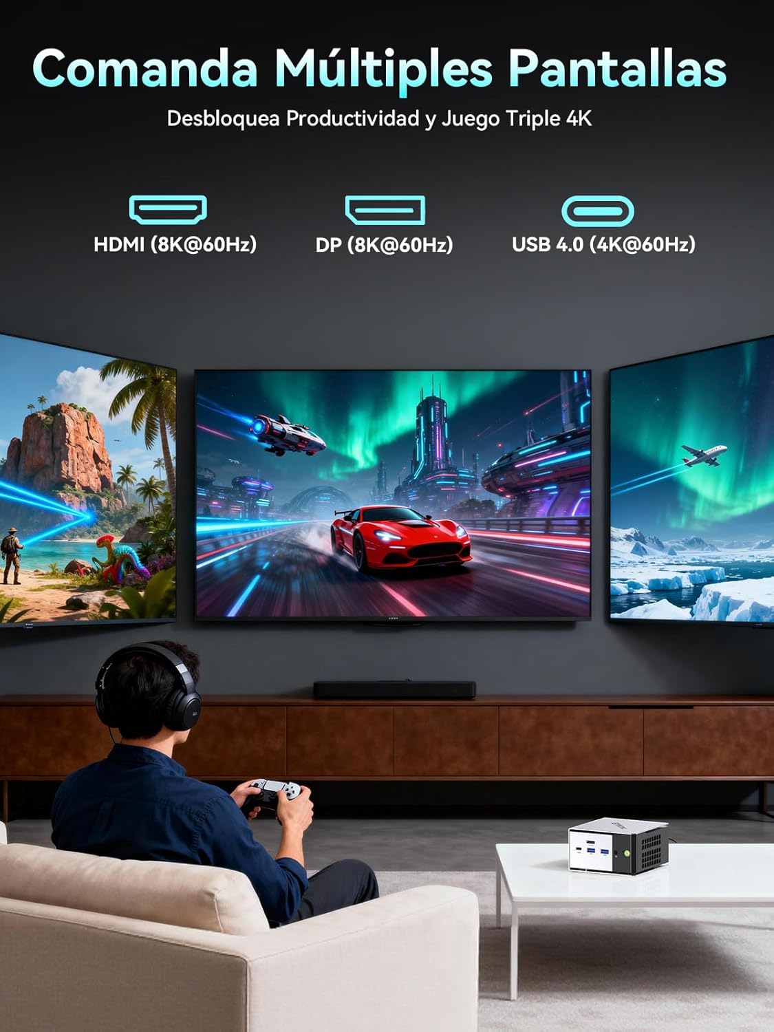 MINI PC CON CUÁDRUPLE PANTALLA – Nucbox M8 Mini PC está equipado con doble salida de video USB4 USB-C. El puerto HDMI 2.1 más reciente puede conectarse a televisores de gran pantalla y monitores, con salida de hasta 8K@60Hz. La salida de video Type-C DisplayPort puede conectarse a los monitores más recientes con 4K@144Hz. Admite visualización simultánea en cuatro pantallas.