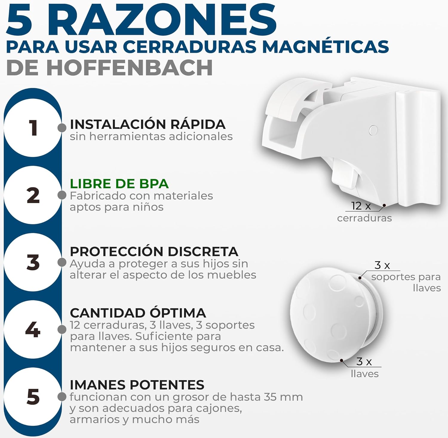 Se el primero en opinar sobre “Hoffenbach Cierre Magnético Invisible para Armarios y Cajones – 12 Seguros para Bebés + 3 Llaves – Bloqueo de Seguridad Infantil con Cerradura Magnética – Imanes Adhesivos para Muebles – Blanco”