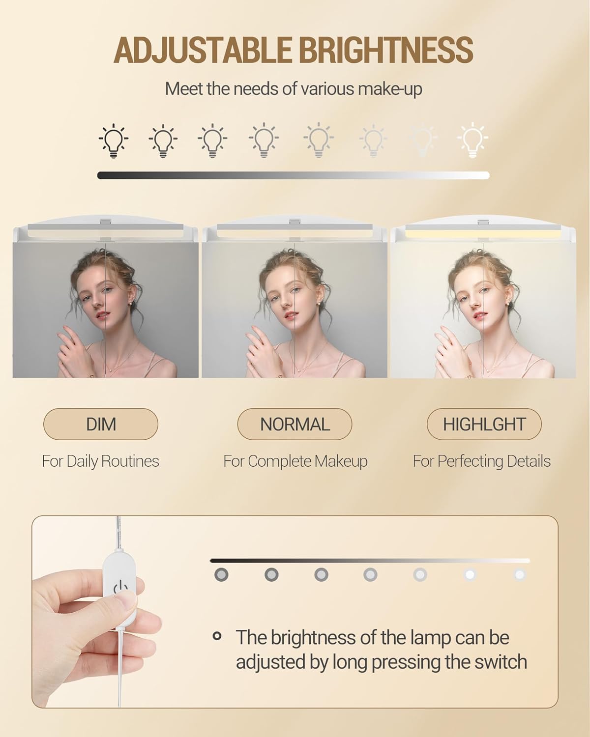 [Iluminación ajustable] Los tubos LED sobre este mueble de baño empotrado en la pared permiten ajustar el ángulo para eliminar sombras faciales y garantizar una iluminación precisa. El brillo también se puede personalizar según tus necesidades, proporcionando la luz perfecta tanto para el aseo matutino como para los cuidados nocturnos de la piel