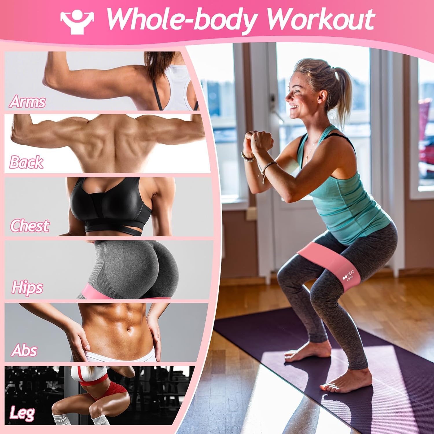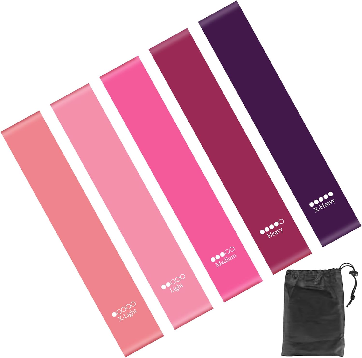 Juego de 5 bandas de resistencia para mujeres y hombres, bandas de entrenamiento para el hogar, gimnasio, yoga, pilates, entrenamiento, juego de ejercicio portátil (rosa)