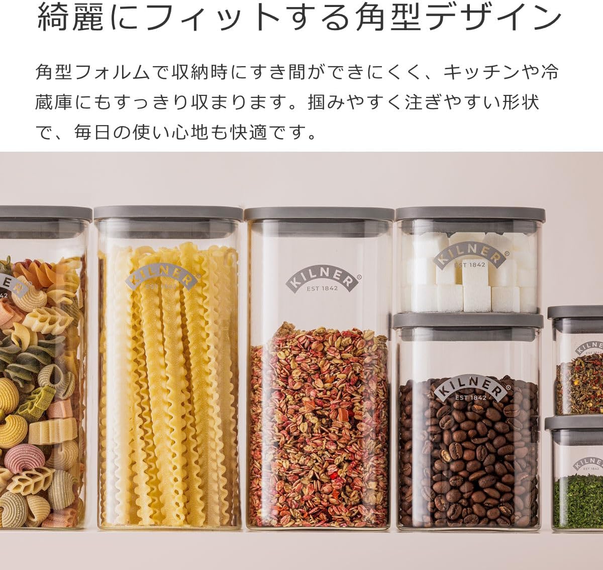 Diseño práctico y apilable: con una moderna forma cuadrada con esquinas fáciles de verter, este recipiente ligero ahorra espacio y es apilable, ideal para su uso en encimeras, armarios o cajones de despensa.