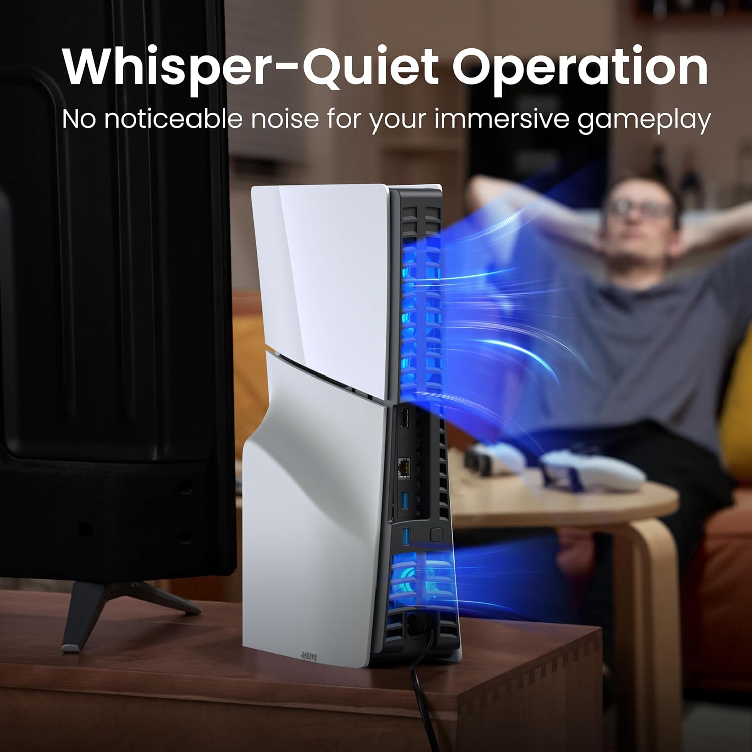 KIWIHOME Ventilador de Refrigeración para PS5 Slim, Ajuste de Velocidad Auto, Accesorios de Refrigeración Silenciosos con LED y USB3.0 Externo, para Disc y Ediciones Digitales, No para PS5 Pro