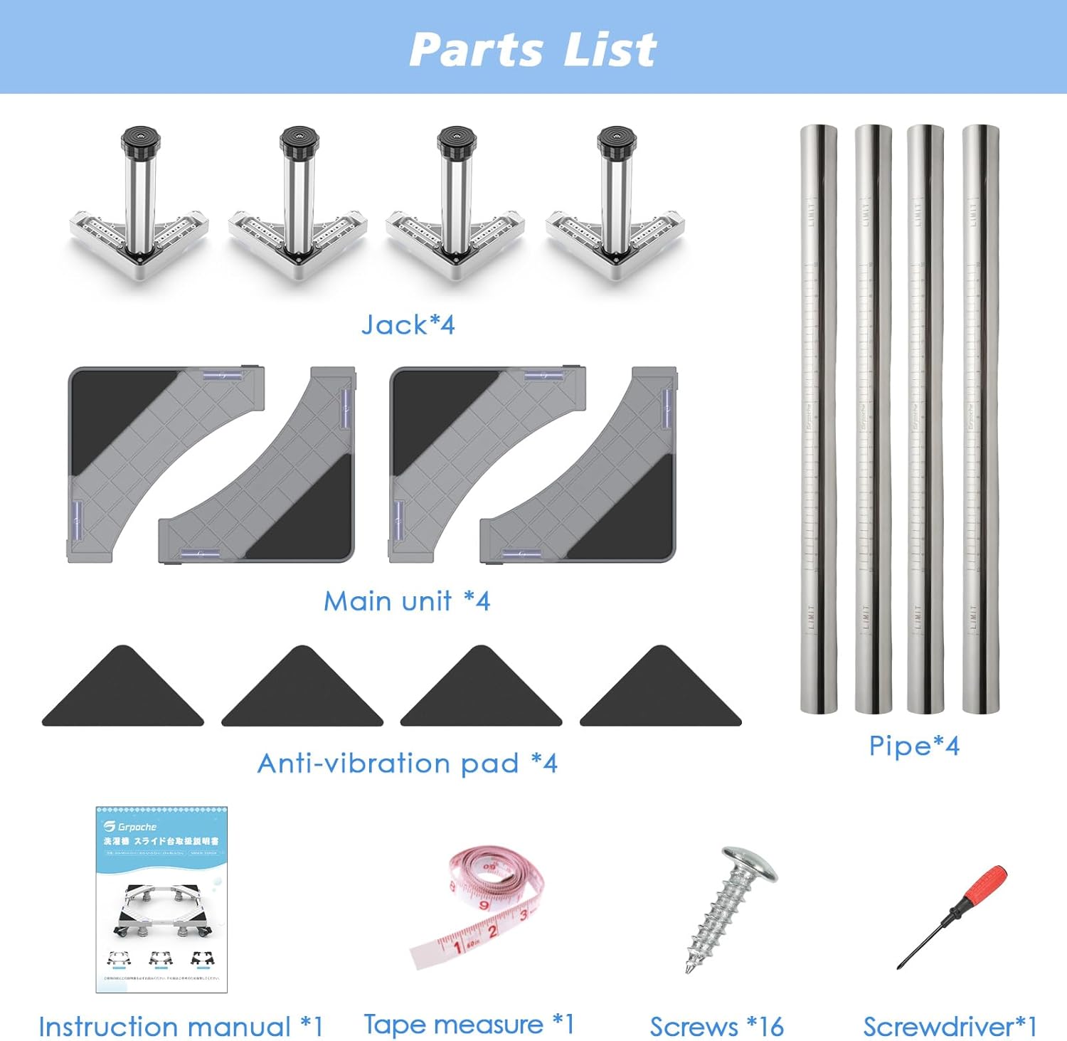 Fácil de instalar: esta base de soporte para lavadora viene con un manual de instrucciones (idioma español no garantizado). De acuerdo con las instrucciones, puedes completar fácilmente el montaje sin utilizar ninguna máquina perforadora. Al instalar, deja parte del tubo de acero inoxidable en la extensión para mantener la estabilidad. Al final de la instalación, bloquea las cuatro patas para mantener la base en un estado completamente horizontal, y coloca el equipo en la almohadilla de espuma del carrito para lograr el mejor efecto de carga.