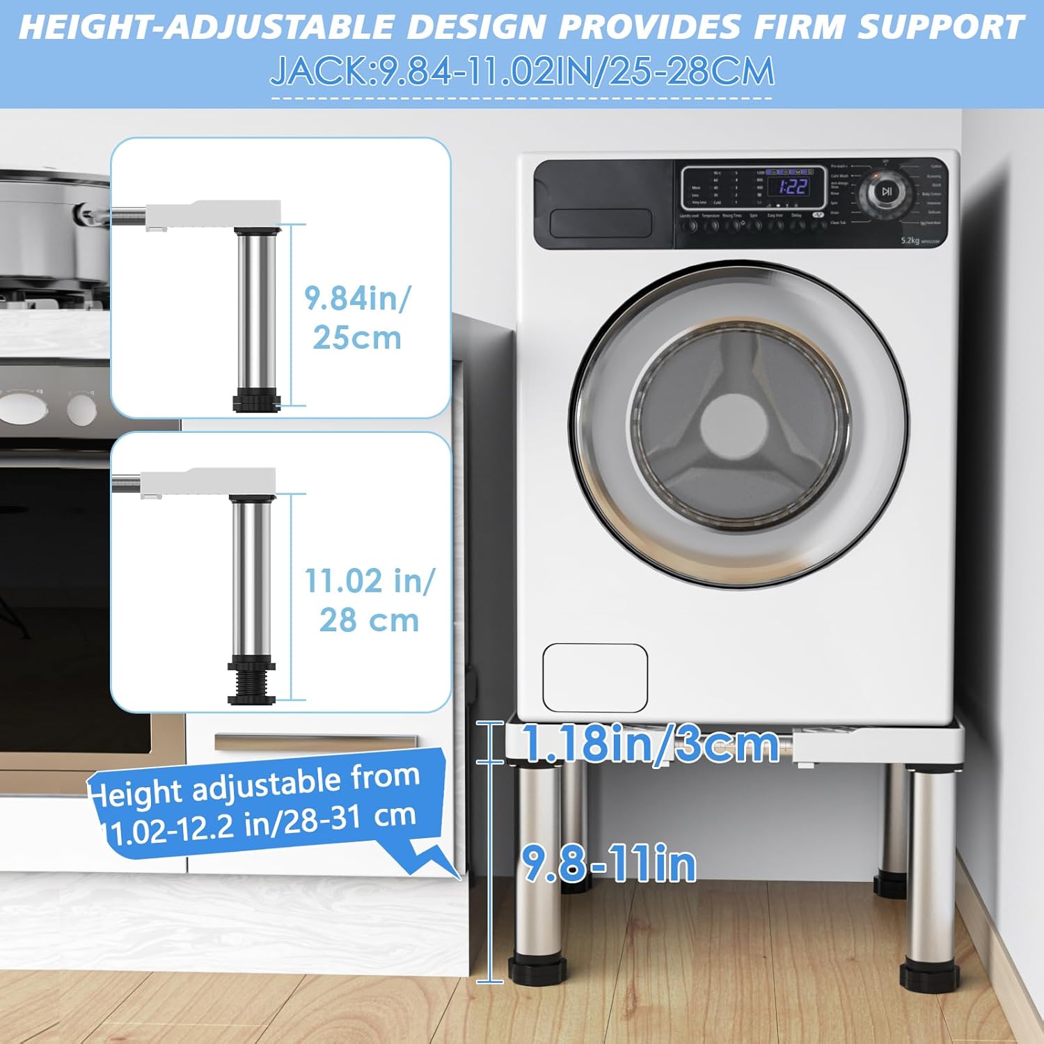 Mini soporte para nevera con 4 pies fuertes, base de soporte universal ajustable para refrigerador portátil, secadora, pedestal de lavandería, electrodoméstico de 9.8 a 11 pulgadas de altura (blanco,