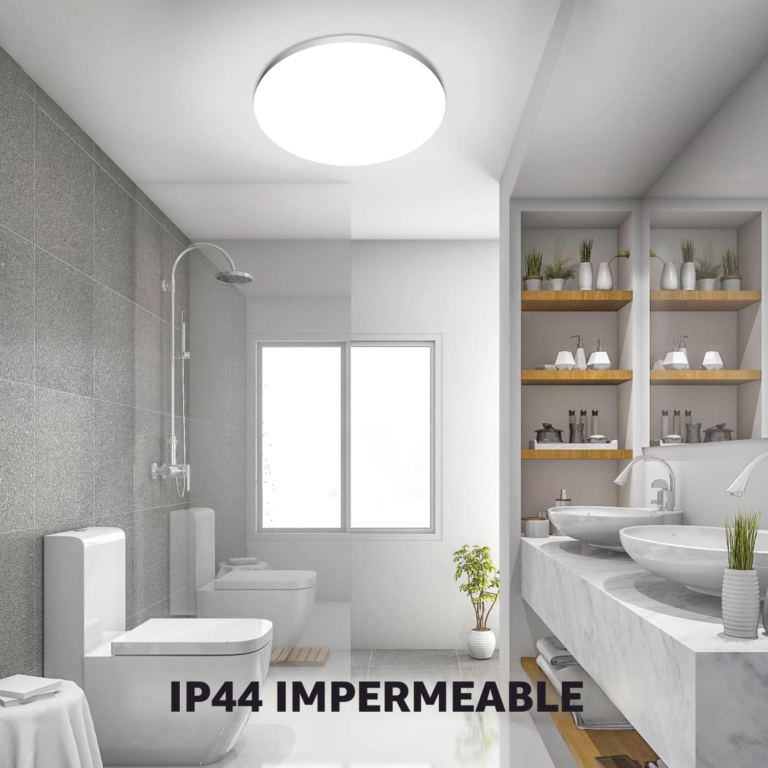 OUILA Plafon LED Techo, 24W 2000LM 6500K Lampara Techo, IP44 Ø28cm Plafones para Techo Led Lampara Led Techo Dormitorio Cocina Pasillo Baño Sala