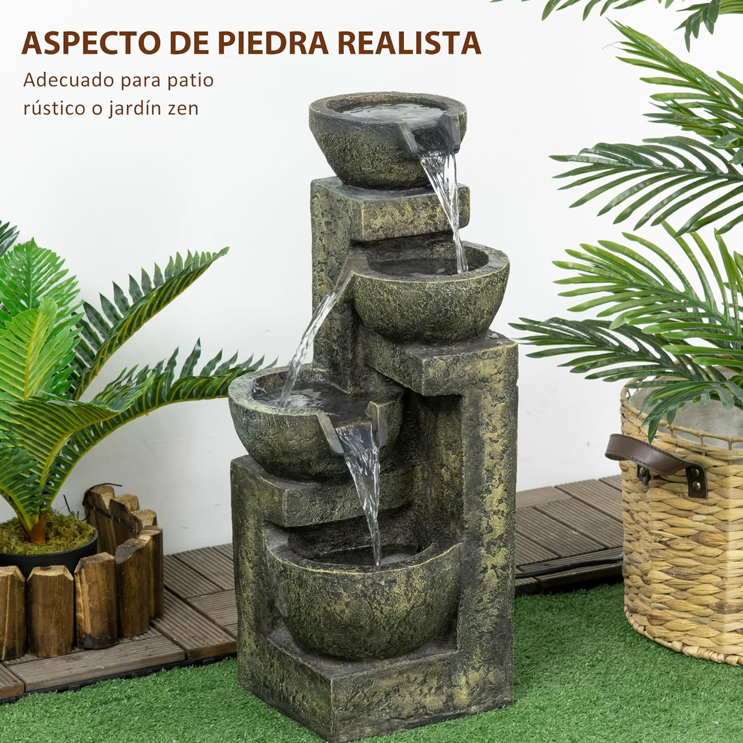 Outsunny Fuente de Jardín 5W Fuente de Agua en Cascada de 4 Niveles con Bomba de Agua y Salida de Agua Ajustable para Decoración Patio 25x24x60 cm Multicolor