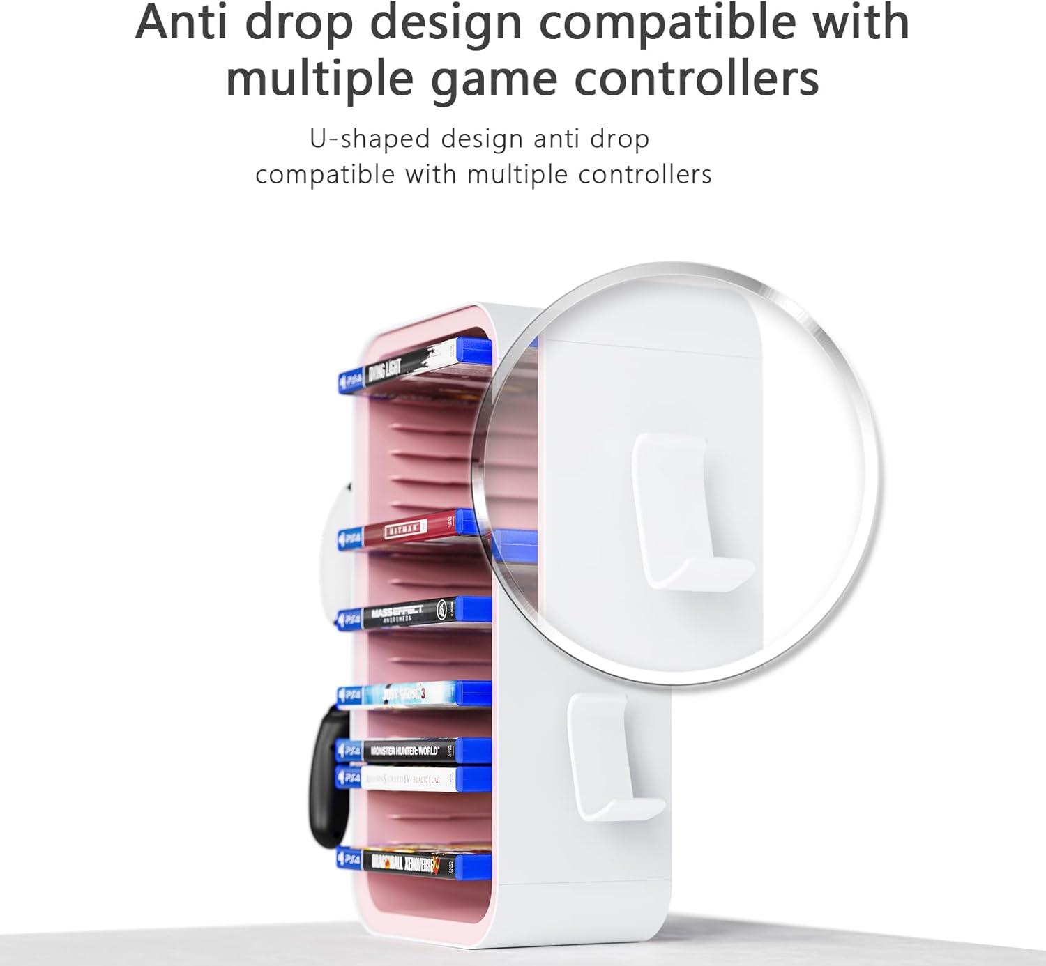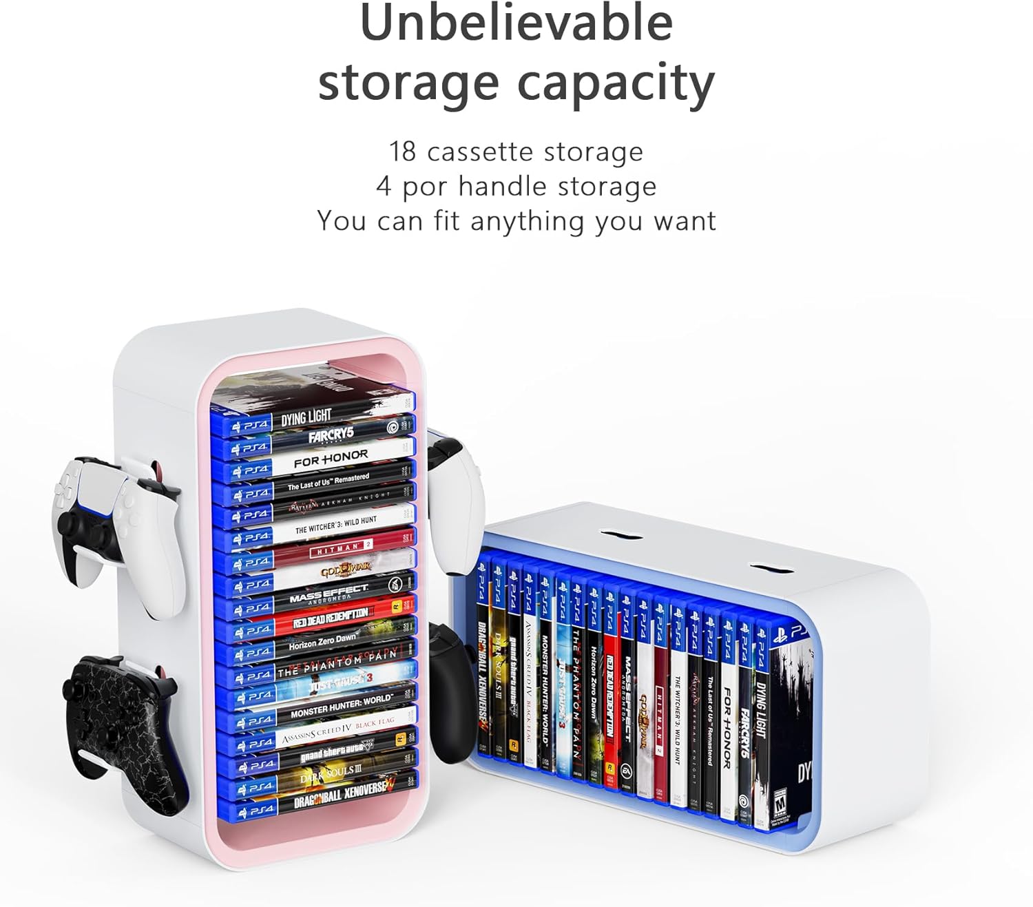 Diseñado con 18 ranuras para discos y 4 soportes para accesorios, este soporte es ideal para tener todo tu equipo gaming en un mismo lugar. Perfecto para juegos, controles, auriculares o incluso discos Blu-ray todo en un diseño práctico y elegante.