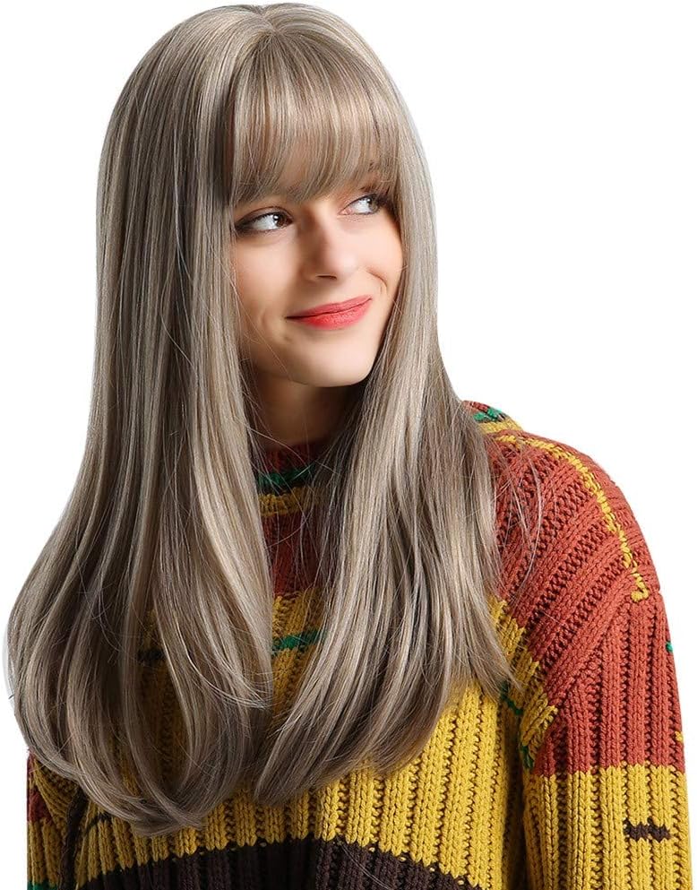 Pelucas, Peluca de pelo de fibra química Moda para mujer Flequillo fino Peluca de pelo largo y liso, Salud y belleza (B)