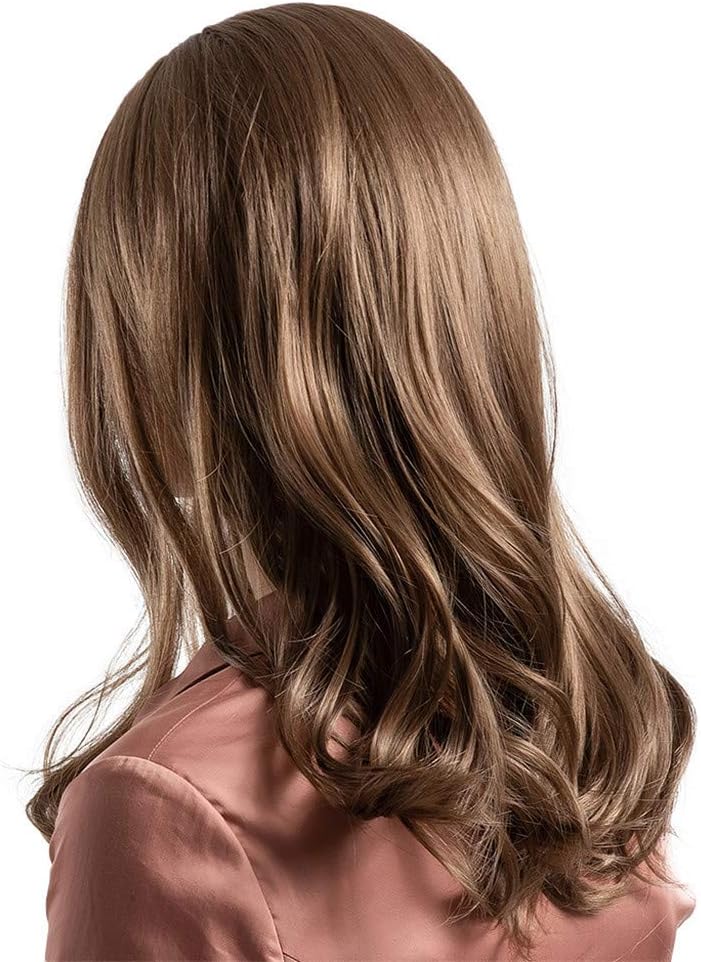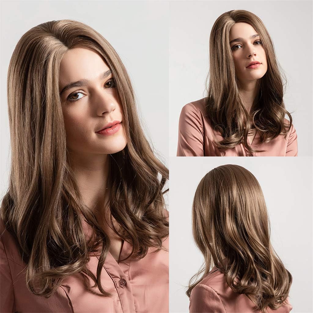 Pelucas, peluca larga natural sintética, marrón claro, con raya media, cabello ondulado, peluca de mujer, salud y belleza (como se muestra)