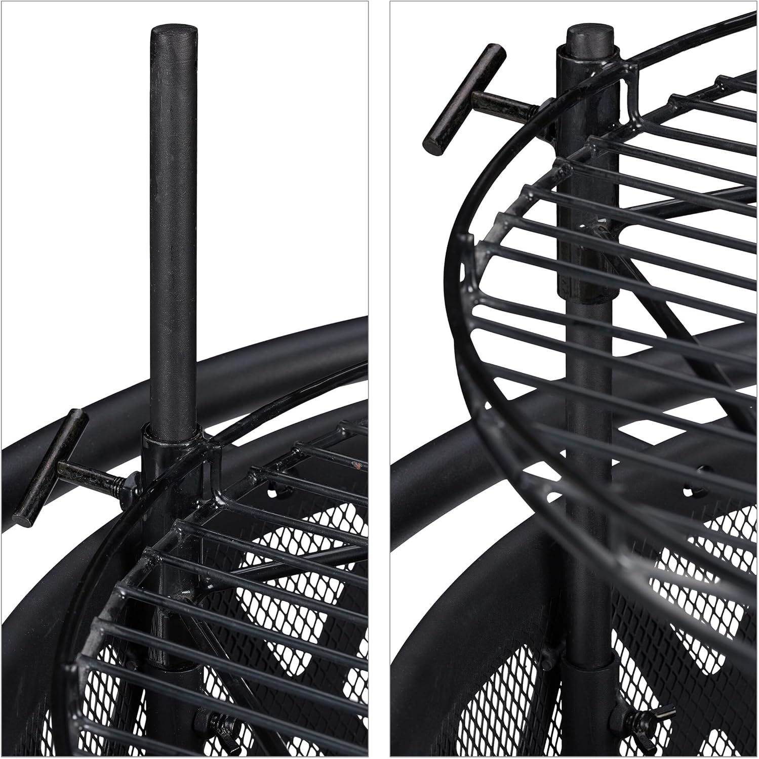 Relaxdays Brasero Exterior con Parrilla, Protector Antichispas y Atizador, Estufa Jardín y Terraza, 75 cm, Acero, Negro