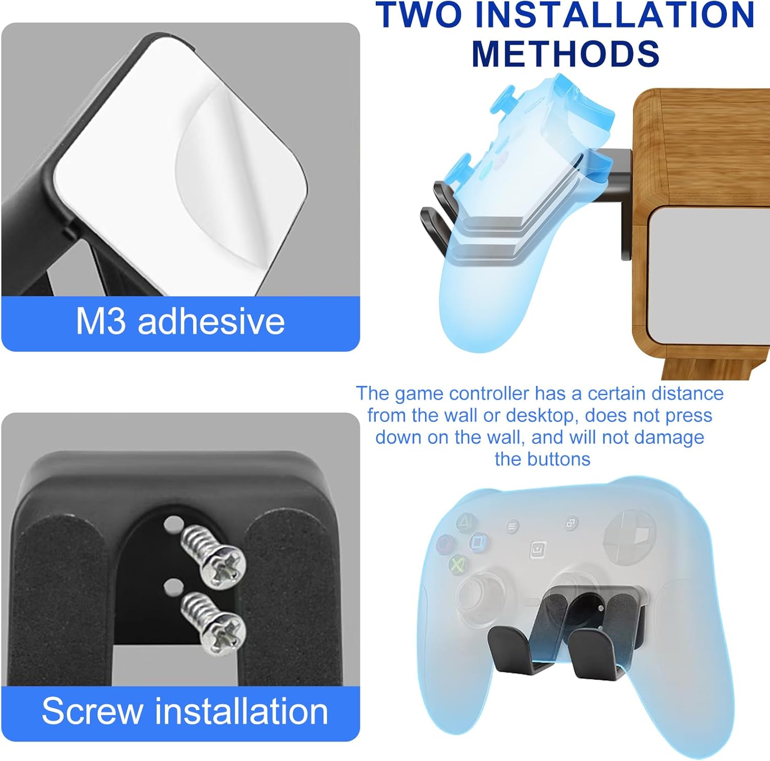 Fácil instalación: El soporte de mando ps5 tiene 2 opciones de montaje para que usted elija. Se puede montar fácilmente en superficies lisas con pegatinas autoadhesivas o atornillar al borde de un escritorio, pared u otros lugares adecuados para cumplir con diferentes escenarios de uso.