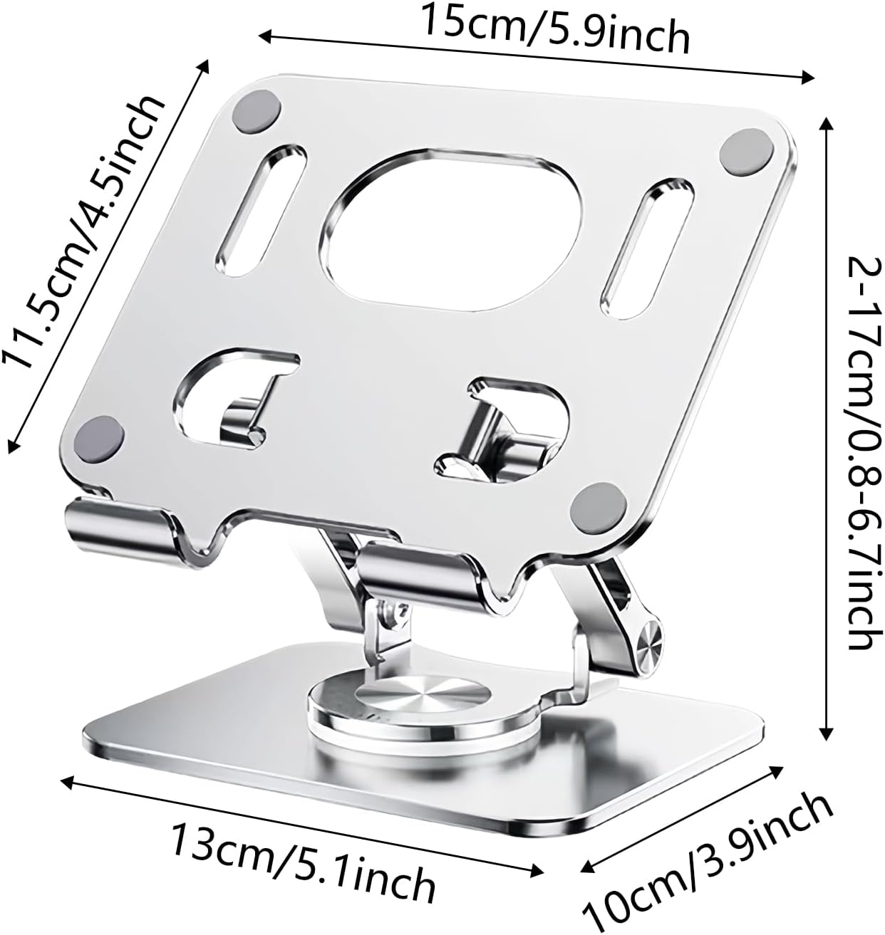 Soporte para tablet ajustable de aluminio, plegable, soporte de altura ajustable, soporte para tableta, soporte para ordenador portátil con base giratoria de 360 pulgadas, compatible con