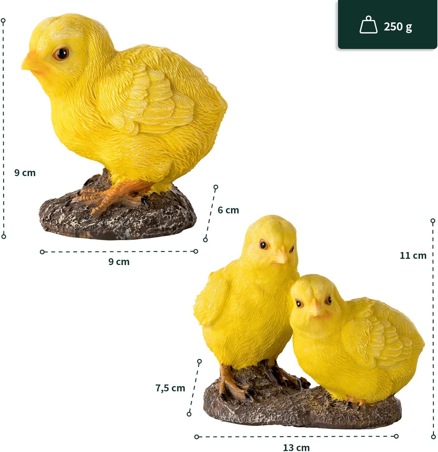 REALISTA: polluelos muy realistas con plumas amarillas.Debido a la representación detallada de los polluelos, el ambiente natural de su jardín permanece preservado.