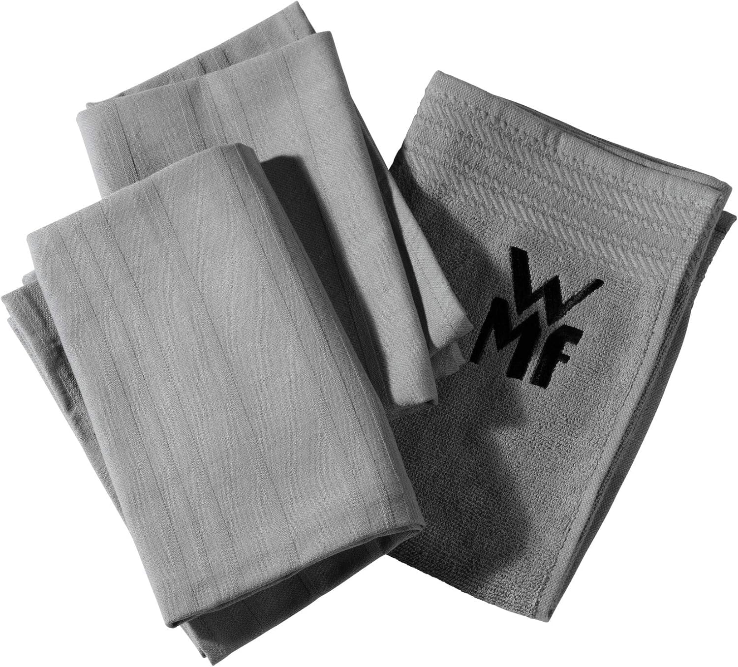 WMF -Set 3 Piezas, 2 Paños de Cocina y 1 Toalla de Cocina de Mano, Algodón, Gris, 3 Unidades